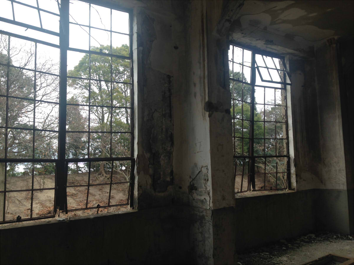 ここが元毒ガス島なんて微塵も感じさせない。外面も崩れた窓と良い感じに茂った木々が絶妙な美しさを織成す。