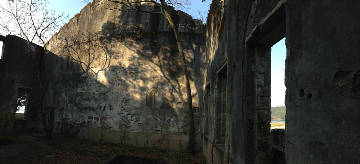 ここが元毒ガス島なんて微塵も感じさせない。外面も崩れた窓と良い感じに茂った木々が絶妙な美しさを織成す。
